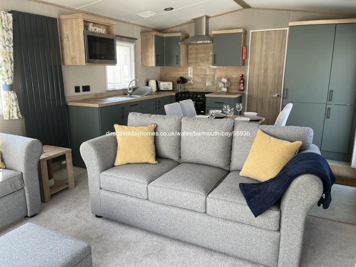 This is a beautiful pet friendly, three bedroom static caravan for hire on Barmouth Bay Holiday Park in Gwynedd, North Wales, complete with double glazing and central heating.