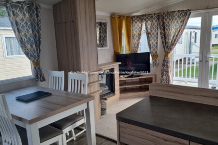 ABI Swift, 38’ x 12’ caravan with decking for hire at Blue Dolphin Holiday Park, set in a quiet location near the sea, yet a 5 minute walk from to the complex.