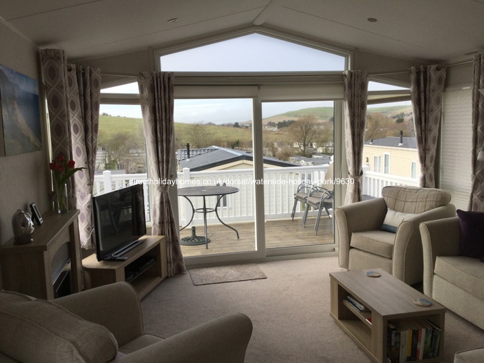 Luxurious 2 bedroom Aspen Lodge caravan for hire on the 5* Bowleaze Holiday Park & Spa, set in a prime location with stunning panoramic views across Weymouth Bay and surrounding countryside.
