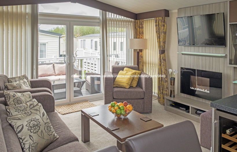 Beautiful Swift Champagne holiday home for hire on Waterside’s Bowleaze Cove Holiday Park & Spa in Weymouth.