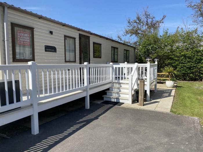 Luxurious extra-large ABI Ambleside holiday home in prestigious cul-de-sac location with large front/side deck with rattan garden furniture, paved patio area and private parking right outside door.