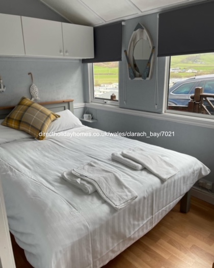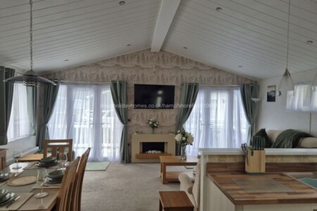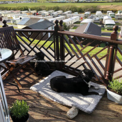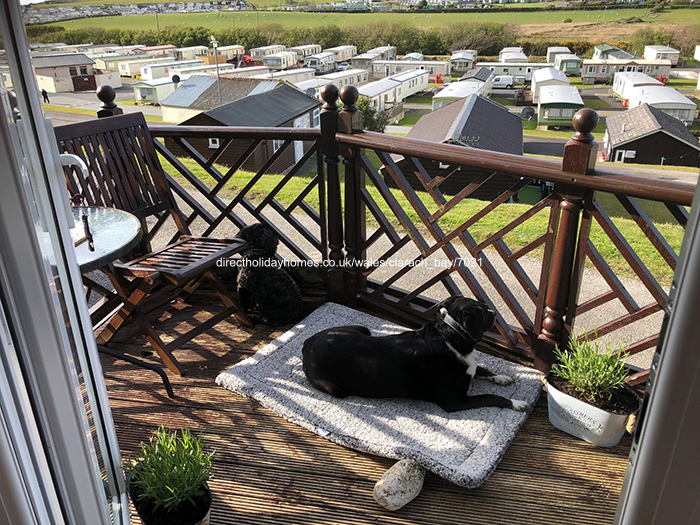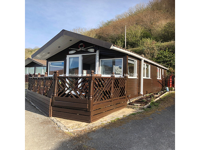 5 berth, top row holiday chalet for hire on Clarach Bay Holiday Village in Aberystwyth, offering a large decking area with beautiful and stunning sea and valley views.