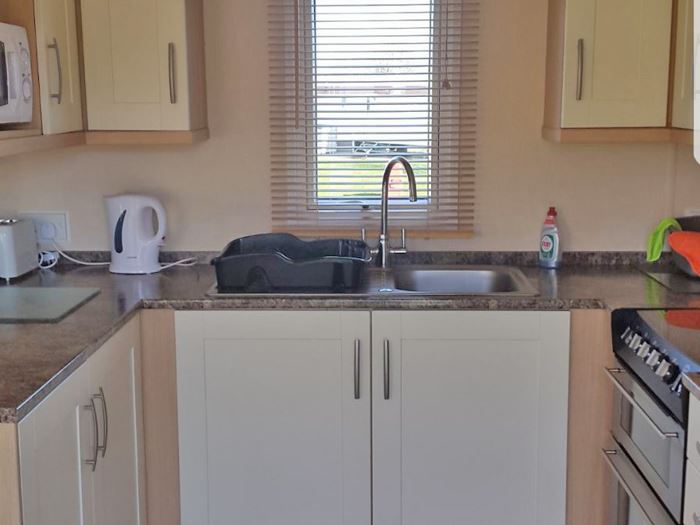 Beautiful 3 bedroom, double glazed and fully gas central heated caravan for hire, located in the Greenan Village area of Craig Tara Holiday Park.