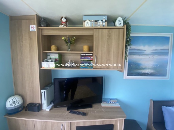 Pet friendly caravan with sea view for hire on Devon Cliffs Holiday Park, located 100m from the beach & about 6 mins from the entertainment complex/swimming pool etc.