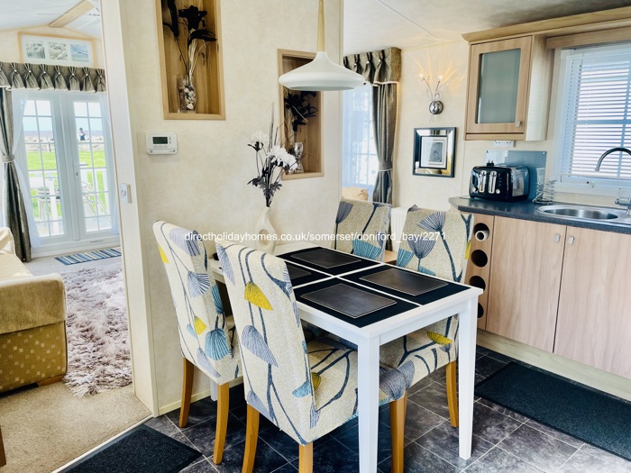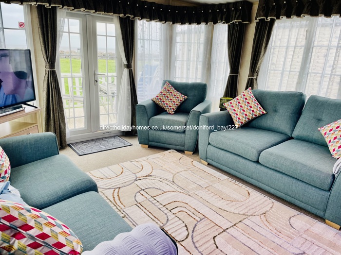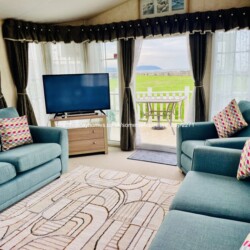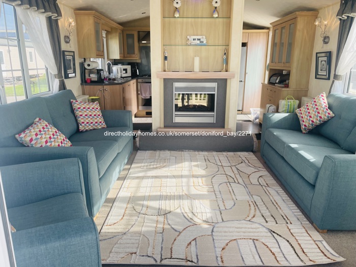 This front row, sea view caravan for hire on Doniford Bay Holiday Park, is situated within a few yards of the sea wall steps and will your holiday has that ‘feel good factor’.