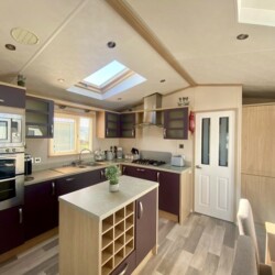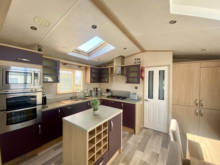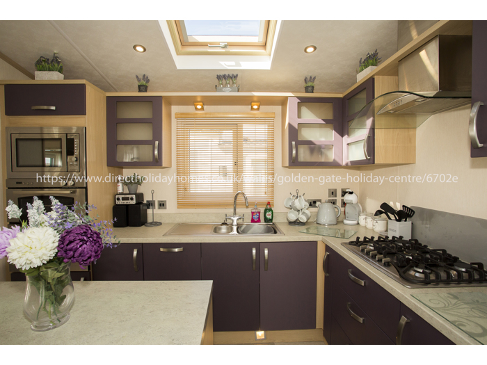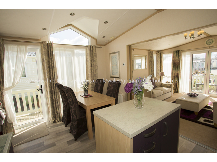 Top spec holiday home on Golden Gate Holiday Centre in Towyn, with CH, DG, full size bath, washer/dryer, 50” TV, decking with seating & sited close to the facilities.