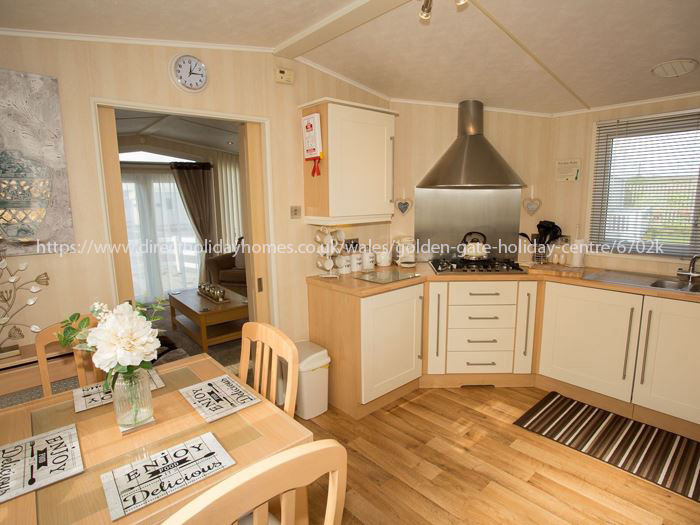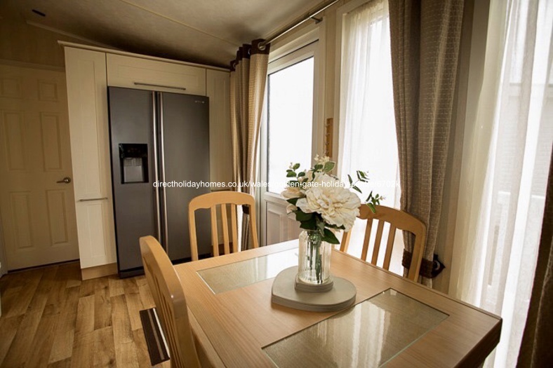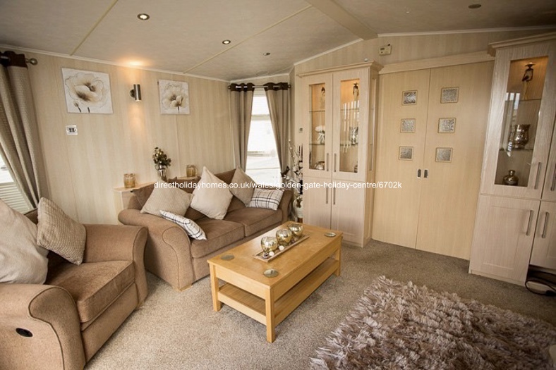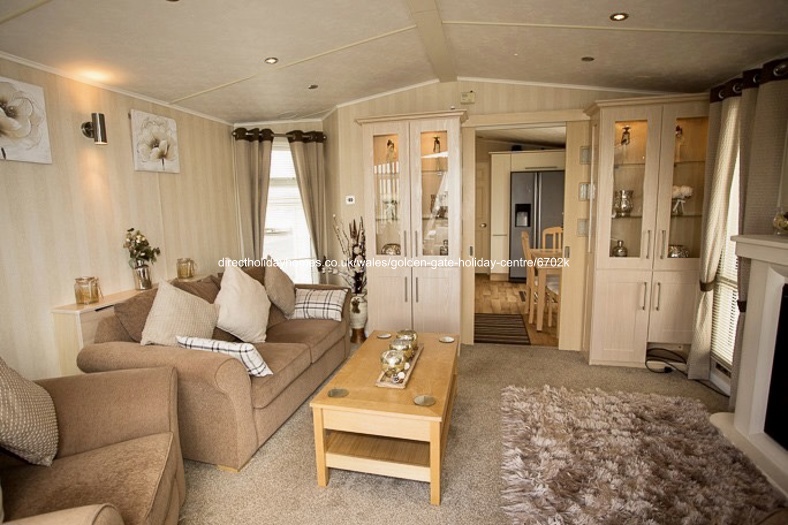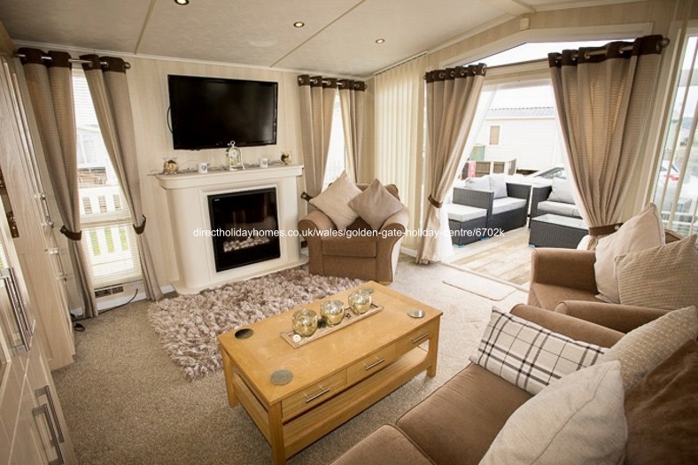 42′ x 13′ Plaza Grande holiday home to let on Golden Gate in Towyn; beautifully furnished throughout with a large decking at the front plus ramp access at the side for those finding steps a struggle.