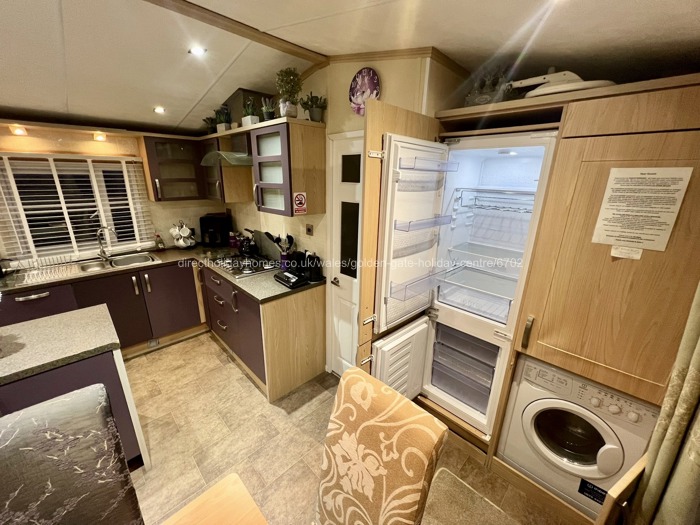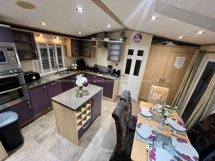 Our 42 x 14, 3 bedroom lodge with an impessive wraparound decking and ramped access, is sited on a prime plot at Golden Gate Holiday Centre in Towyn.