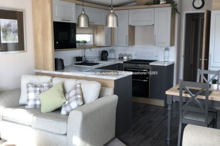A lovely ABI Clarendon caravan to let is positioned in a quiet part of Haven’s Greenacres Holiday Park at Black Rock Sands, just a 2 minute walk from the amenities on site.