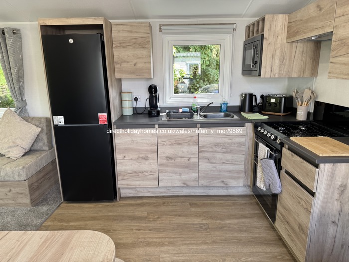 Pet friendly, 2016 three bedroom static caravan that benefits from having double glazing and central heating and is in a prime position at Haven’s Hafan y Mor Holiday Park, in Pwllheli, North Wales.