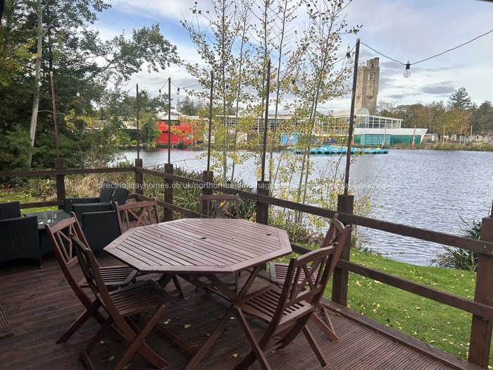 Our beautiful, more older style, charming chalet for hire on Haggerston Castle Holiday Park, is situated in a quiet cul-de-sac with lovely views overlooking the main lake from both the lounge and bedroom.