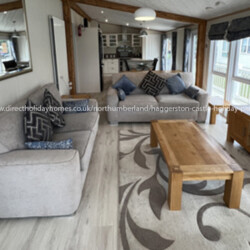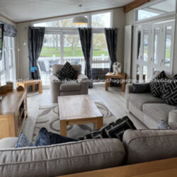 We have a spacious, open plan Pemeberton Rivendale lodge that is situated overlooking the fishing lake at Haggerston Castle Holiday Park.