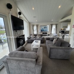 Stunning Oyster Bay, 40 x 20 lodge, with double glazing, gas central heating and decking overlooking the fishing lake of Castle Lake.