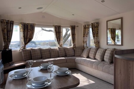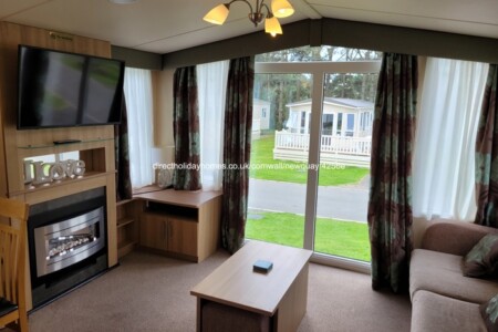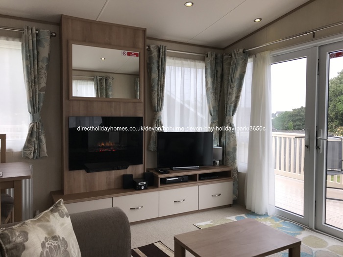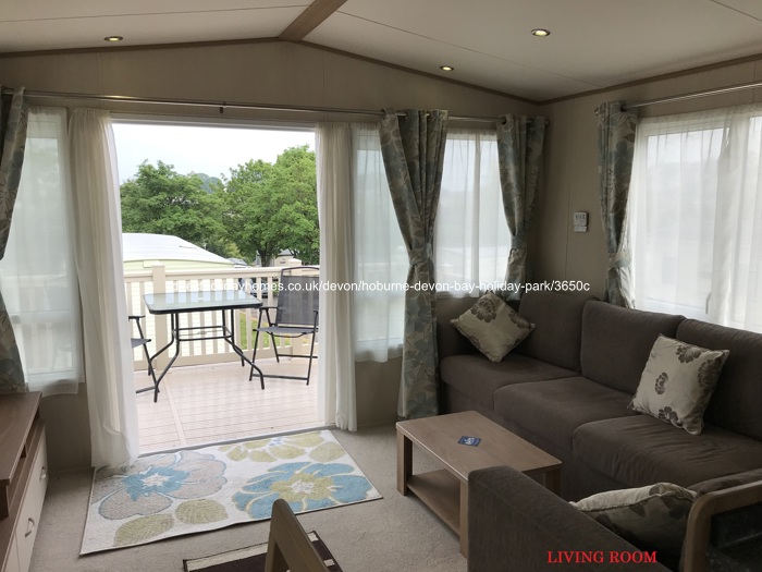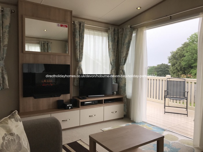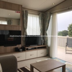 Our spacious 3 bedroom, 8 berth ABI Sunningdale caravan on Hoburne Devon Bay in Paignton, comes with French doors that open out over a large veranda, with parking alongside.