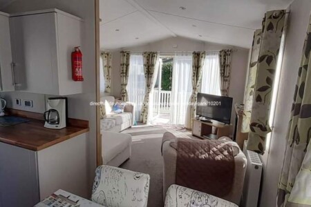 Our holiday home with a large sun decking area is sited on a quiet plot, with hedgerow at the rear. The comfortable lounge has patio doors leading onto the sun decking.