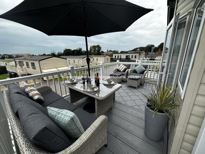 We have to offer a beautiful, three bedroom caravan with full central heating, double glazing and a large, sunny decking area for hire at Hoburne Park in Christchurch, Dorset.