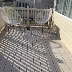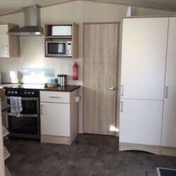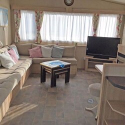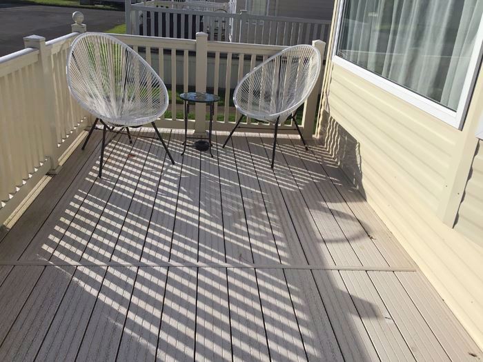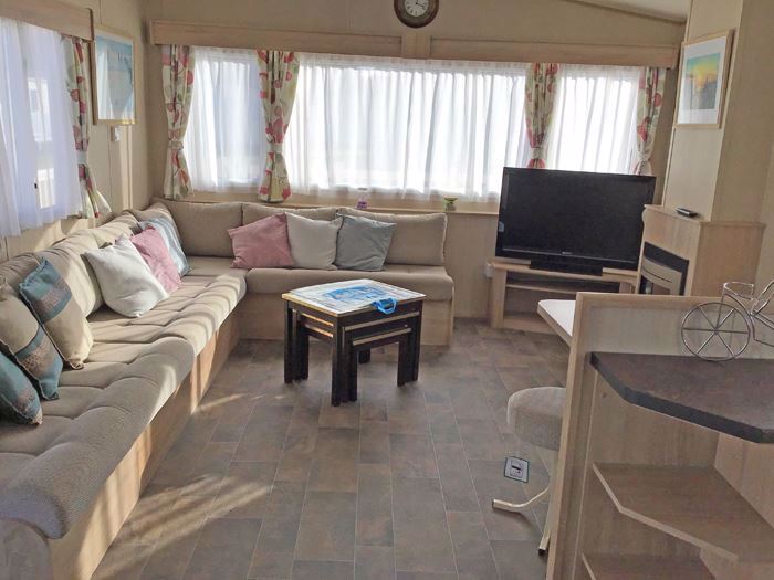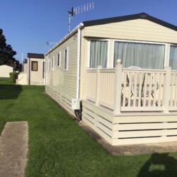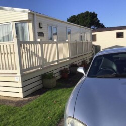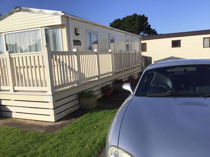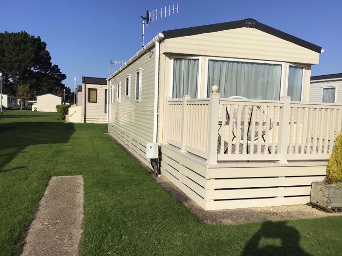 ABI Summer Breeze holiday caravan on Hoburne Holiday Park in Dorset, benefits from central heating, a decking catching the sun all day and parking alongside.