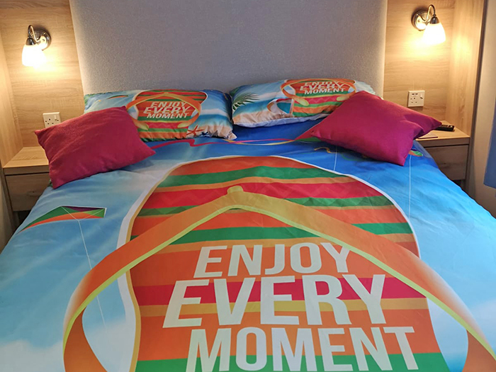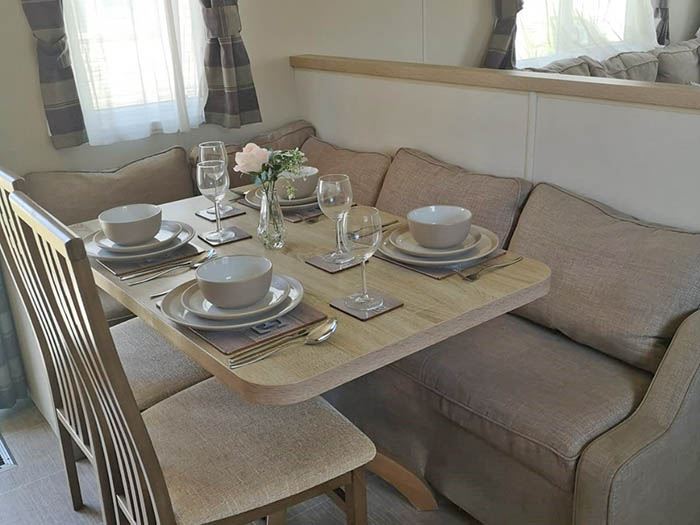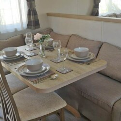 Our beautiful, central heated, 2 bedroom caravan is now available for hire on Hoburne Park in Dorset, benefitting from a fantastic sunny decking for those morning coffees or evening glasses of wine.