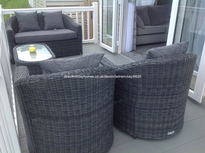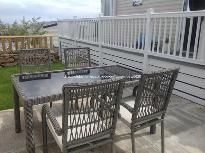 Our lovely central heated and double glazed single caravan lodge home for hire on Ladram Bay Holiday Park has car parking for one car and a lovely sea view.