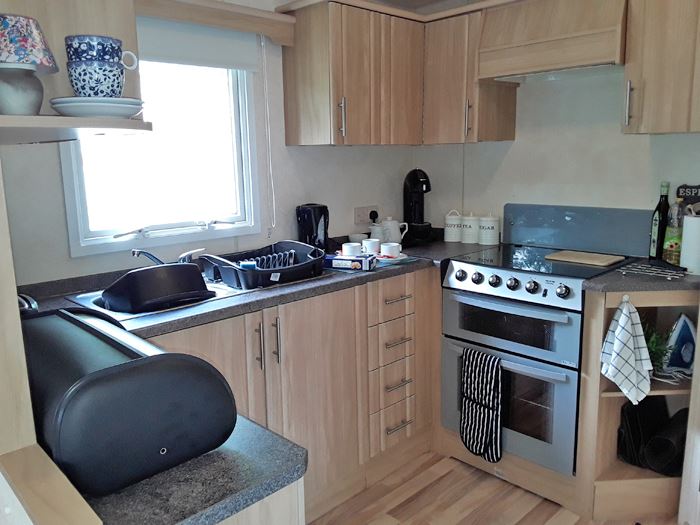 Our spacious, extra wide, fully double glazed and central heated, 3 bedroom caravan is available for hire on Parkdean’s 4* Looe Bay Holiday Park.