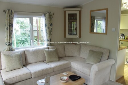 Spacious 2 bedroom, 6 berth, 36’ x 12’ ABI Beachcomber holiday caravan to let on Lyons Robin Hood in Rhyl, benefitting from double glazing, central heating & an open plan living area.