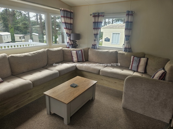 Beautiful pet friendly caravan for hire on Newquay Holiday Park, set in a cul-de-sac and offering a wraparound decking benefitting from the sun throughout the day.