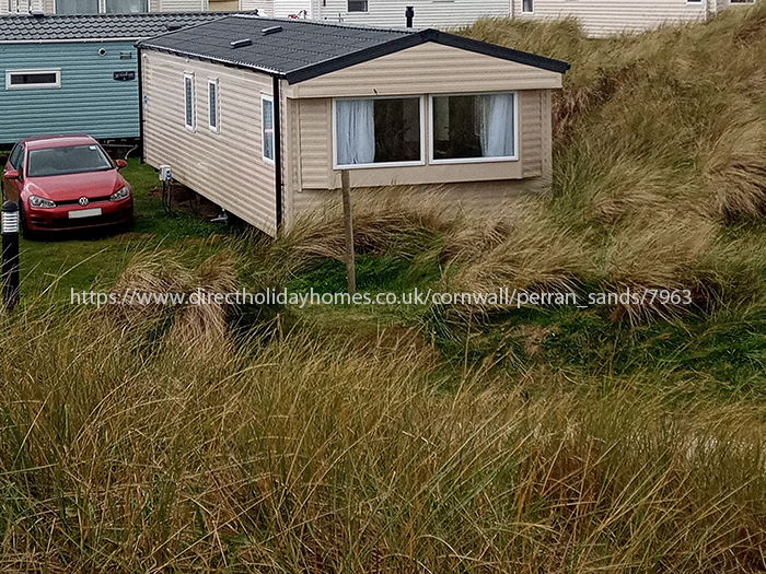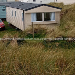 Our caravan for hire is situated in a quiet area of Perran Sands Holiday Park, on the edge of the sand dunes, and is only a short stroll away from the 3km sandy beach and the park facilities.