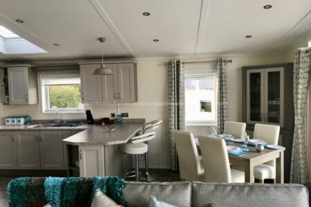 Our holiday caravan for hire on Perran Sands Holiday Park in Cornwall, is a Swift Bordeaux Exclusive, situated just a 10 minute walk from Perranporth beach.