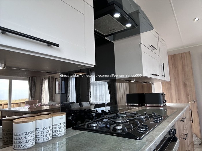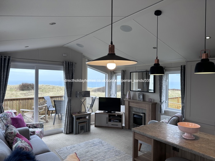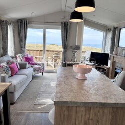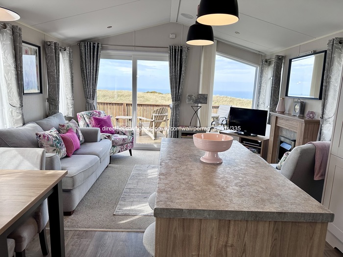 Our holiday caravan for hire on Perran Sands Holiday Park, is situated in a prime front row position on Pentreath View, offering beautiful sea views.