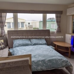 Family-owned, dog-friendly caravan to hire on Primrose Valley Holiday Park, complete with decking, table & chairs & parking outside your door, alongside the decking – ideal for the perfect staycation.