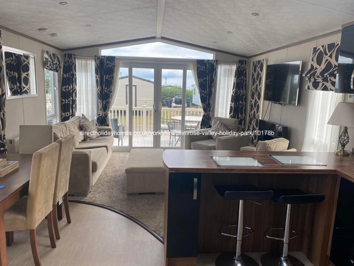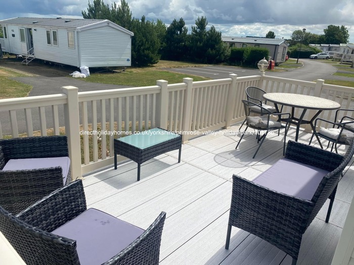 Modern & luxurious caravan for hire on Haven’s Primrose Valley Holiday Park, set in a relaxing & tranquil location, just a 10 minute walk from Lakeside facilities & the beach.