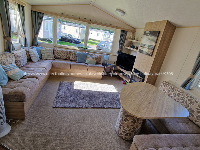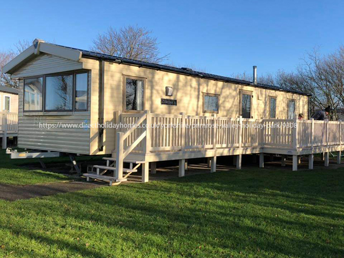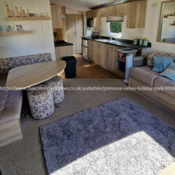 This is our pet friendly, two-bedroom static caravan that offers stunning sea views from a quiet a relaxing plot on Bay View at Primrose Valley Holiday Park in Filey, Yorkshire.
