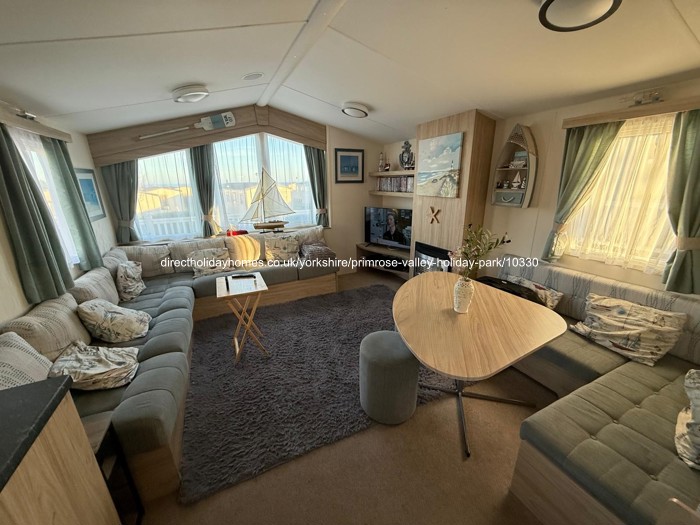 Two bedroom holiday caravan to let on Primrose Valley Holiday Park, complete with sea view and located just a 5 minute walk from the beach.