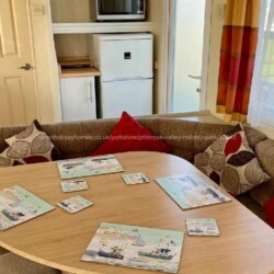 We have a lovely 3 bedroom, pet friendly caravan for hire on Haven’s Primrose Valley Holiday Park, complete with full wraparound decking, with sea views and outdoor seating.