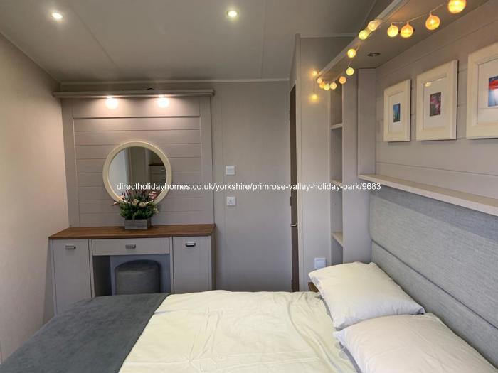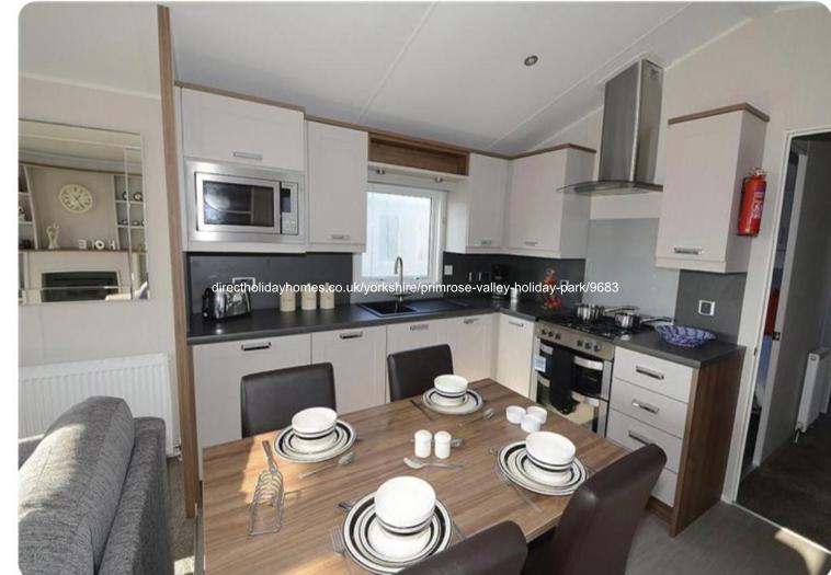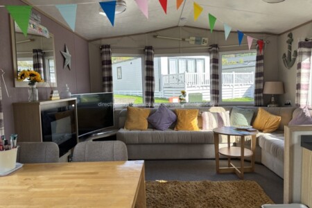 This is our pet friendly, two-bedroom static caravan that offers stunning sea views from a quiet a relaxing plot on Bay View at Primrose Valley Holiday Park in Filey, Yorkshire.