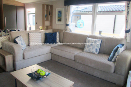 This is our pet friendly, two-bedroom static caravan that offers stunning sea views from a quiet a relaxing plot on Bay View at Primrose Valley Holiday Park in Filey, Yorkshire.