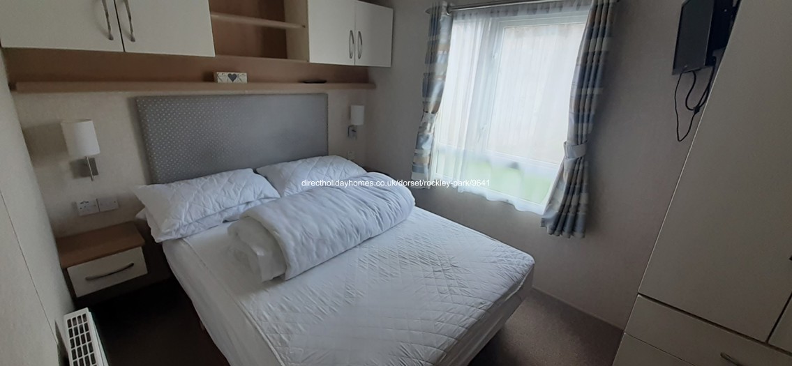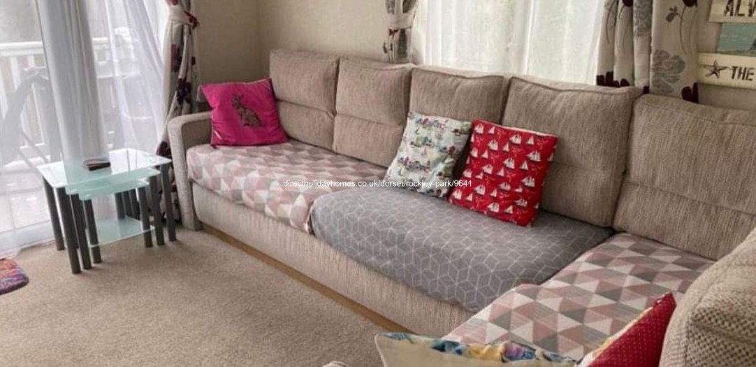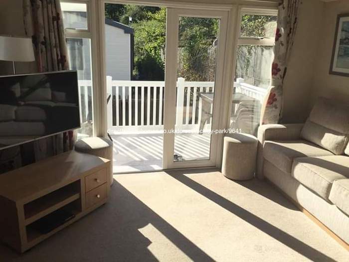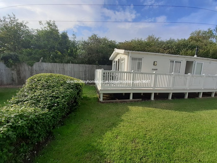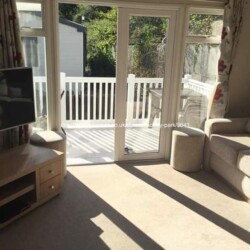 Welcoming family owned 3 bedroom caravan for hire at Haven’s Rockley Park in Poole, Dorset, with large wraparound decking, outdoor seating and garden area.