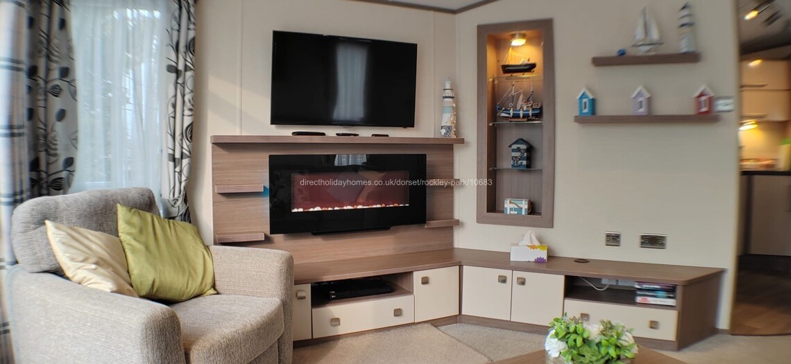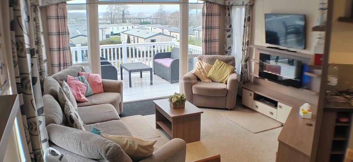 Stunning 3 bedroom caravan for hire on Rockley Park in Poole, Dorset, set in an elevated position and within a short walk of the private beach, entertainment and pools.