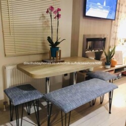 Our lovely, double glazed and central heated, three bedroom caravan with decking area is situated at Haven’s Seashore Holiday Park in Great Yarmouth, Norfolk.