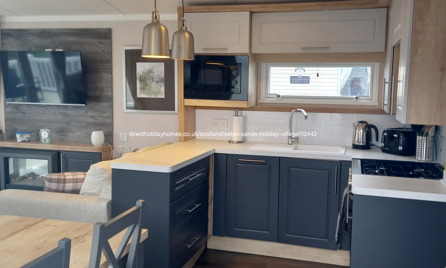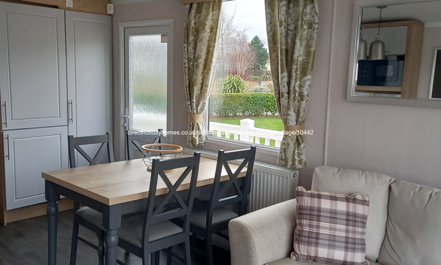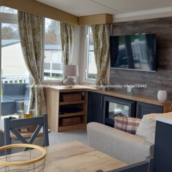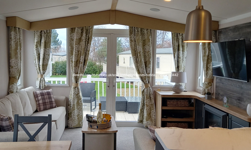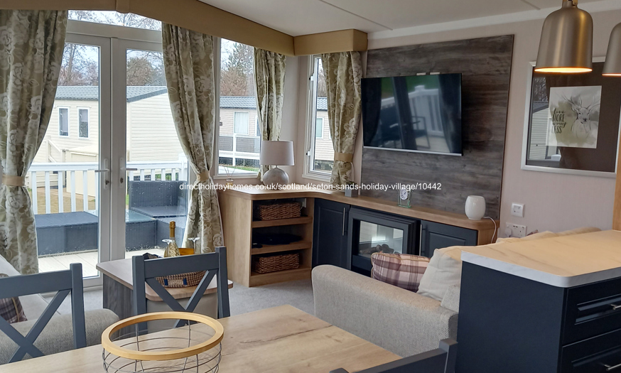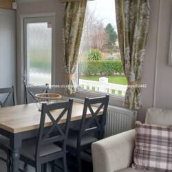 Upgraded 2022, Swift Bordeaux Exclusive caravan for hire on Seton Sands Holiday Park in Port Seton, Scotland, complete with wraparound decking, central heating and double glazing.