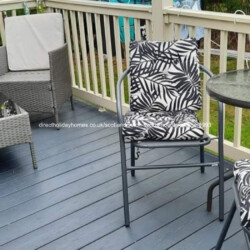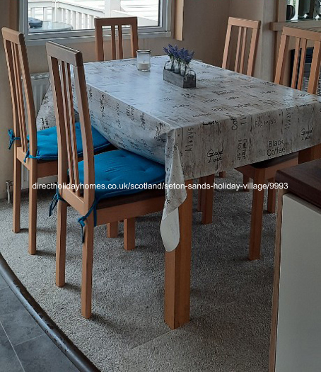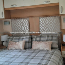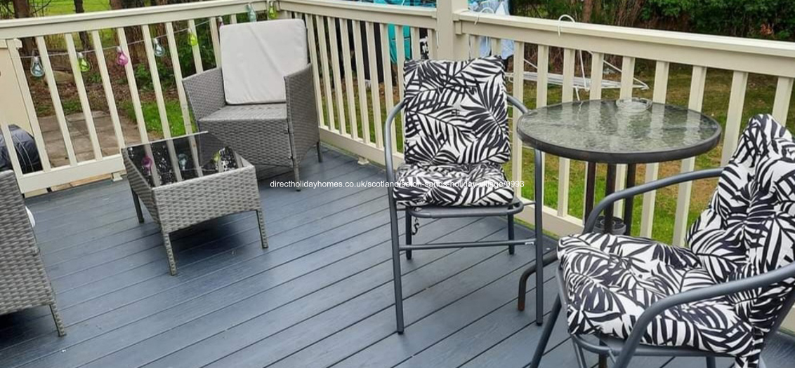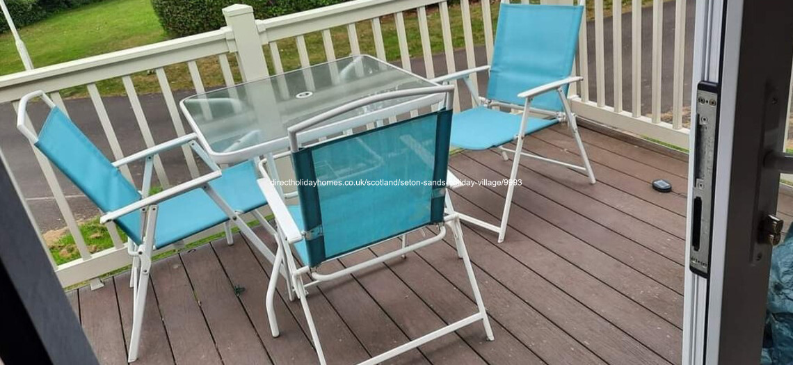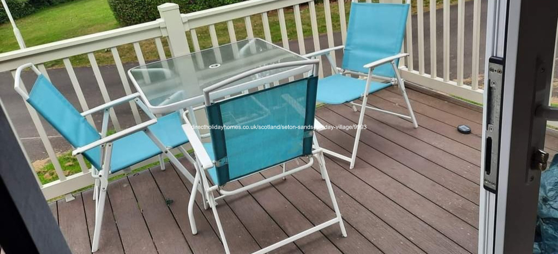 Our lovely bright and airy, home from home caravan to let on Seton Sands Holiday Park, has patio doors to the front, with a front decking and extra wide side decking.