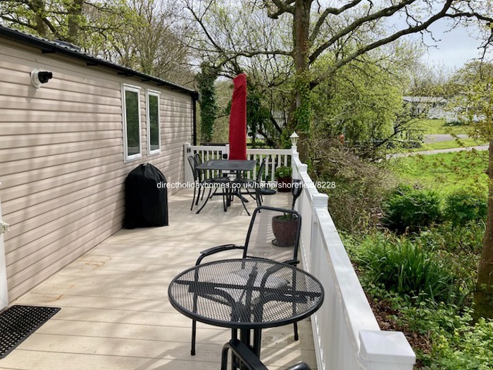 Rosewood 11 is our lovely holiday lodge for hire on Shorefield Country Park, situated in a quiet and secluded wooded area, with a stream running past.
