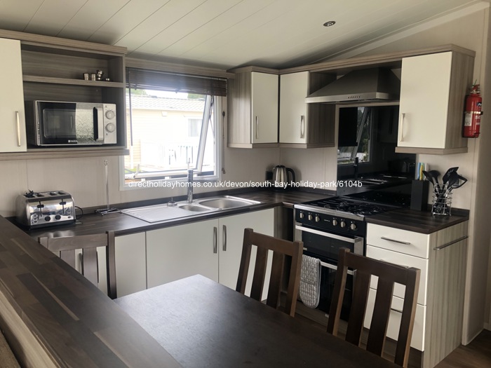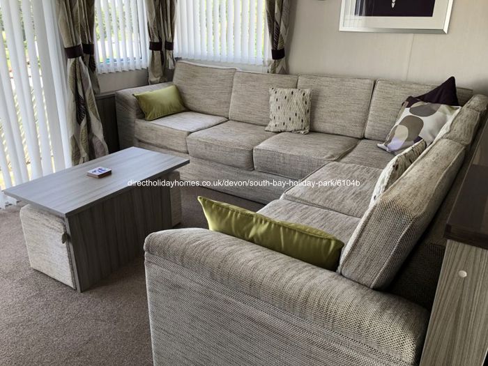 This is our large, spacious, luxurious and pet friendly caravan for hire with Wi-Fi on the superb South Bay Holiday Park in Devon, overlooking Brixham and the sea.