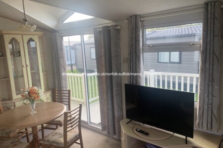 Three bedroom, 8 berth, dog friendly caravan available to hire on The Chase Caravan Park in Ingoldmells, complete with a full-length veranda with ramp.