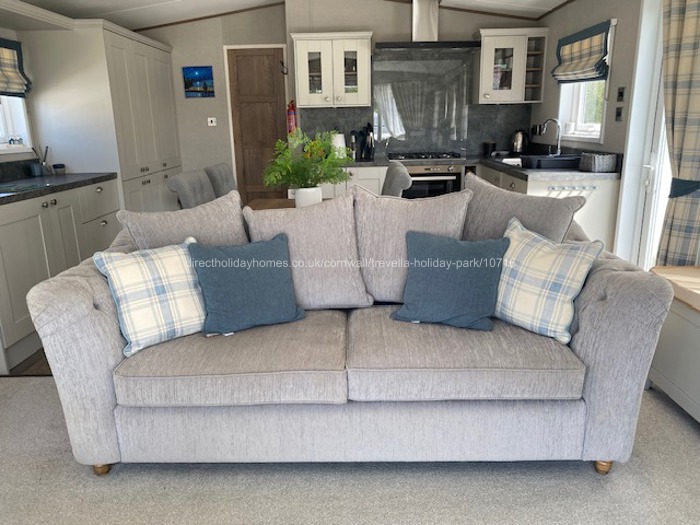 Beautiful, extra wide (42’ x 14’) ABI Beaumont, south facing, dog friendly caravan for hire on Trevella Park in Newquay, located on Watergate; a lovely quiet area of the park overlooking a small lake.