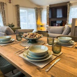 Our stunning 38′ x 18′ Newbury Lodge is situated in an excellent, prime location on White Acres Holiday Park, with beautiful countryside views.